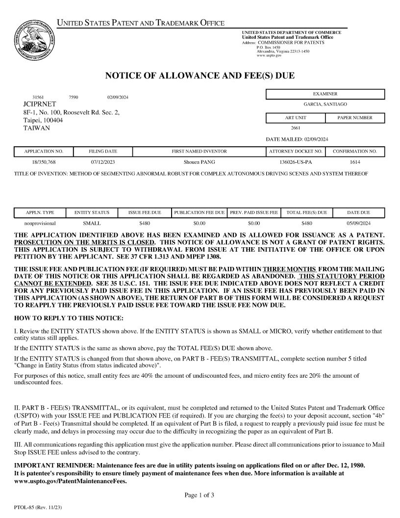 恭賀山東聚祥榮獲美國專利授權<一種面向復雜自動駕駛場景的異常魯棒分割方法與系統>